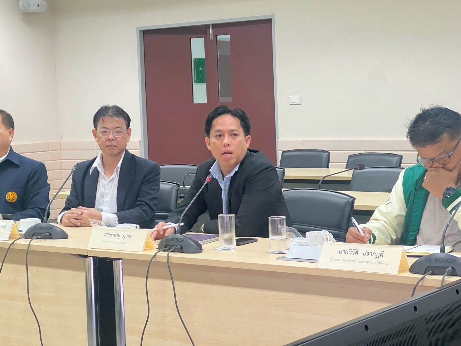 วันที่ 16 ตุลาคม 2568 นายชาญณรงค์ อินทนนท์ รักษาการแทนผู้อำนวยการองค์การอุตสาหกรรมป่าไม้ พร้อมด้วยคณะผู้บริหาร อ.อ.ป. ร่วมกับสมาคมการค้าไม้ขุดล้อมไทย นำโดย ผู้ช่วยศาสตราจารย์ วิเชียร พุทธศรี นายกสมาคมการค้าไม้ขุดล้อมไทย และคณะกรรมการฯ ประชุมหารือแนวทางความร่วมมือในการพัฒนาและส่งเสริมอุตสาหกรรมไม้ขุดล้อมไทยอย่างเป็นระบบ พร้อมแลกเปลี่ยนมุมมองเกี่ยวกับแนวทางการพัฒนาไม้เศรษฐกิจและไม้ล้อมไทยตั้งแต่ต้นน้ำจนถึงปลายน้ำ ทั้งด้านมาตรฐานการปลูก การขุดล้อม และการจัดการสวนป่าเศรษฐกิจของรัฐ เพื่อให้สามารถนำองค์ความรู้ด้านวิชาการและงานวิจัยไปต่อยอดในเชิงธุรกิจและการค้าได้อย่างเป็นระบบ ตลอดจนสร้างความเชื่อมโยงระหว่างผู้ผลิต ผู้ประกอบการ และผู้บริโภคอย่างโปร่งใส เพื่อให้ไม้ขุดล้อมมีคุณภาพที่ดีและสามารถแข่งขันได้ทั้งในประเทศและต่างประเทศ ซึ่งการประชุมดังกล่าว มีขึ้น ณ ห้อง SLB 603 อาคารเรียนรวมสังคมศาสตร์ มหาวิทยาลัยราชภัฏวไลยอลงกรณ์ ในพระบรมราชูปถัมภ์ อำเภอคลองหลวง จังหวัดปทุมธานี