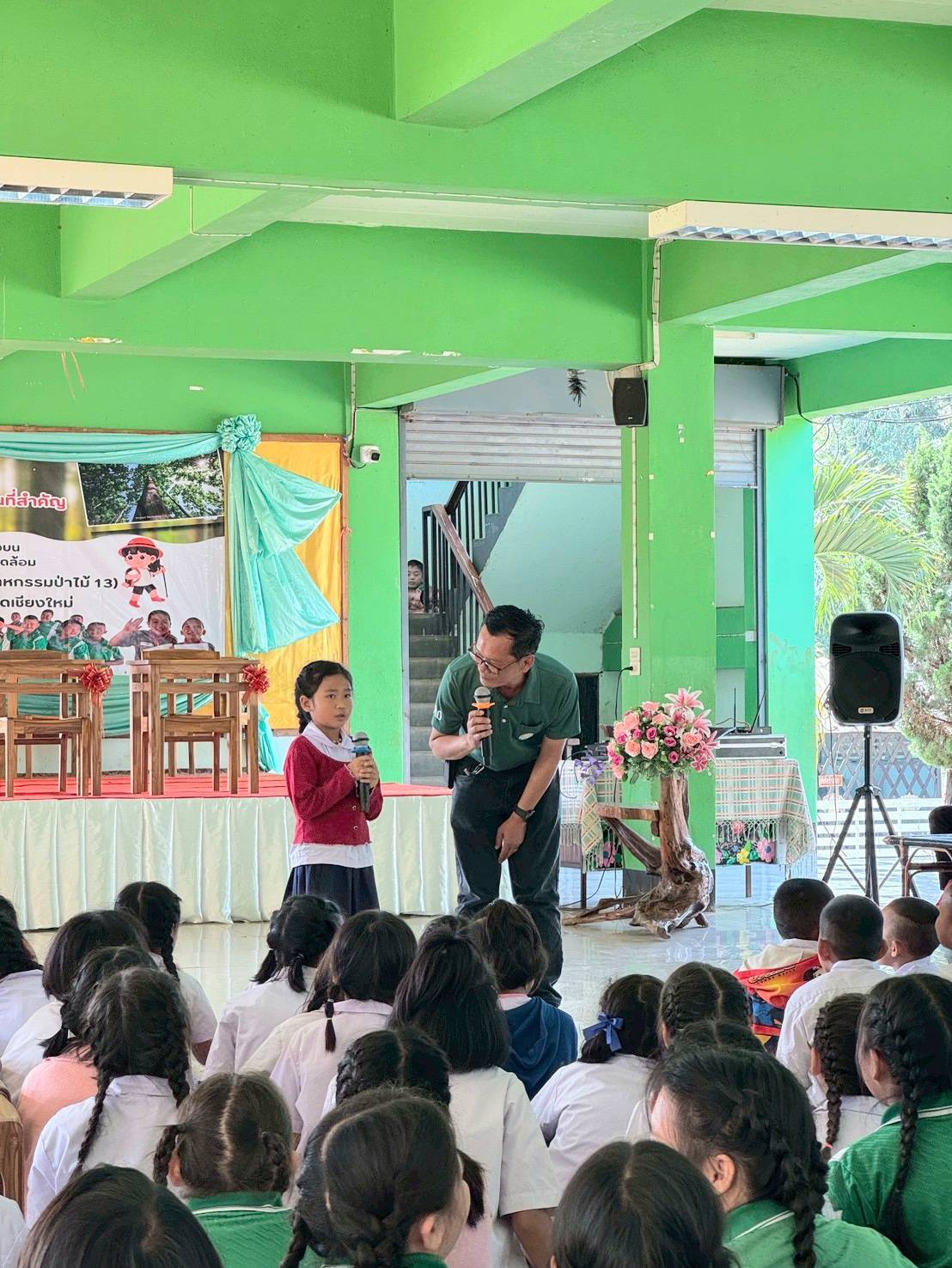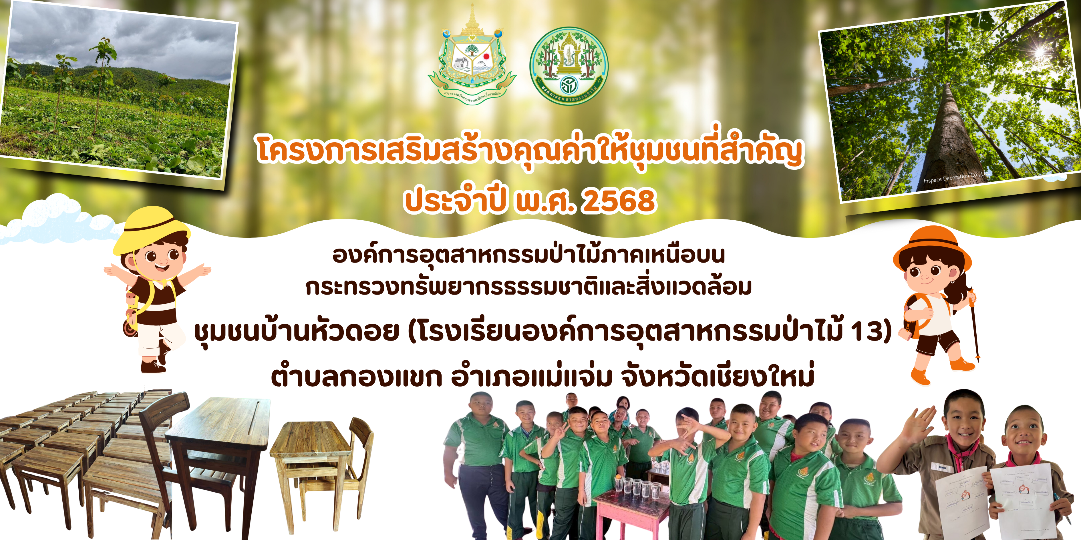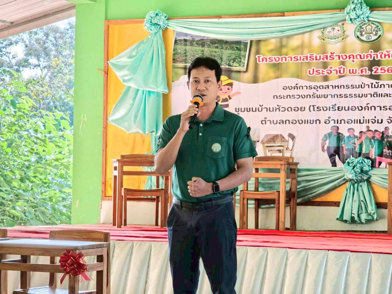 วันที่ 11 พฤศจิกายน 2568 องค์การอุตสาหกรรมป่าไม้ (อ.อ.ป.) มอบหมายให้ นายเกรียงศักดิ์ พยุงแสนกุล ผู้จัดการ ออป.เขตเชียงใหม่ และผู้ปฏิบัติงานในสังกัด จัดกิจกรรมให้ความรู้เกี่ยวกับบทบาทและภารกิจของ อ.อ.ป. เกี่ยวกับการปลูกสร้างสวนป่าไม้เศรษฐกิจ และการดูแลทรัพยากรธรรมชาติและสิ่งแวดล้อม ภายใต้ "โครงการเสริมสร้างคุณค่าให้ชุมชนที่สำคัญ ประจำปี พ.ศ. 2568" ให้กับนักเรียนโรงเรียนองค์การอุตสาหกรรมป่าไม้ 13 อำเภอแม่แจ่ม จังหวัดเชียงใหม่ และในโอกาสเดียวกันนี้ นายเกรียงศักดิ์ฯ ได้เป็นผู้แทน อ.อ.ป. มอบ "ชุดโต๊ะ/เก้าอี้ ไม้สัก" จำนวน 40 ชุด เพื่อเป็นการสนับสนุนและใช้ในการศึกษา โดยมีคณะผู้บริหารและครูโรงเรียนดังกล่าว เป็นผู้รับมอบ
