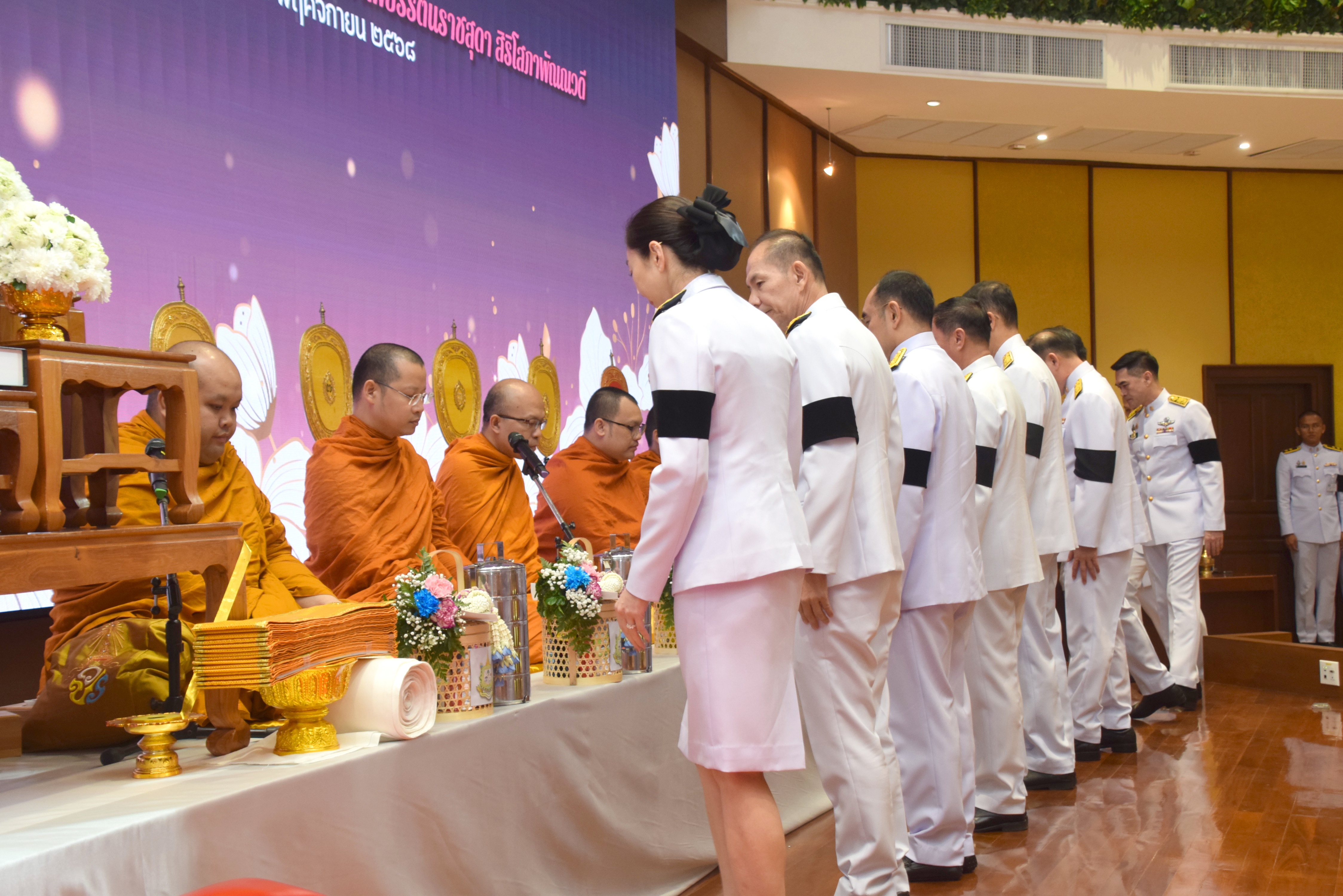 วันที่ 24 พฤศจิกายน 2568 ดร.ชญานันท์ ภักดีจิตต์ ปลัดกระทรวงทรัพยากรธรรมชาติและสิ่งแวดล้อม ให้เกียรติเป็นประธานฯ นำคณะผู้บริหาร ข้าราชการ พนักงานรัฐวิสาหกิจ เจ้าหน้าที่ฯ รวมถึง นายชนุดม เพชรสังข์ รองผู้อำนวยการองค์การอุตสาหกรรมป่าไม้ สายบริหาร และคณะผู้บริหารของ อ.อ.ป. ร่วมพิธีบำเพ็ญกุศลน้อมรำลึก และพิธีทำบุญตักบาตรถวายพระราชกุศลเนื่องในวันคล้ายวันสวรรคตพระบาทสมเด็จพระมงกุฎเกล้าเจ้าอยู่หัว ครบรอบ 100 ปี 25 พฤศจิกายน 2568 และเนื่องในวันคล้ายวันประสูติสมเด็จพระเจ้าภคินีเธอ เจ้าฟ้าเพชรรัตนราชสุดา สิริโสภาพัณณวดี ครบรอบ 100 ปี 24 พฤศจิกายน 2568 โดยพระสงฆ์จำนวน 10 รูป ร่วมสวดพระพุทธมนต์ จากนั้น คณะดังกล่าว ได้ตักบาตรข้าวสารอาหารแห้ง เพื่อถวายเป็นพระราชกุศล ตลอดจน น้อมรำลึกในพระมหากรุณาธิคุณ และพระกรุณาธิคุณ พระบาทสมเด็จพระมงกุฎเกล้าเจ้าอยู่หัว และสมเด็จพระเจ้าภคินีเธอ เจ้าฟ้าเพชรรัตนราชสุดา สิริโสภาพัณณวดี ณ ห้องประชุมศักดิ์สิทธิ์ ตรีเดช และบริเวณด้านหน้าอาคารกรมควบคุมมลพิษ กรุงเทพฯ