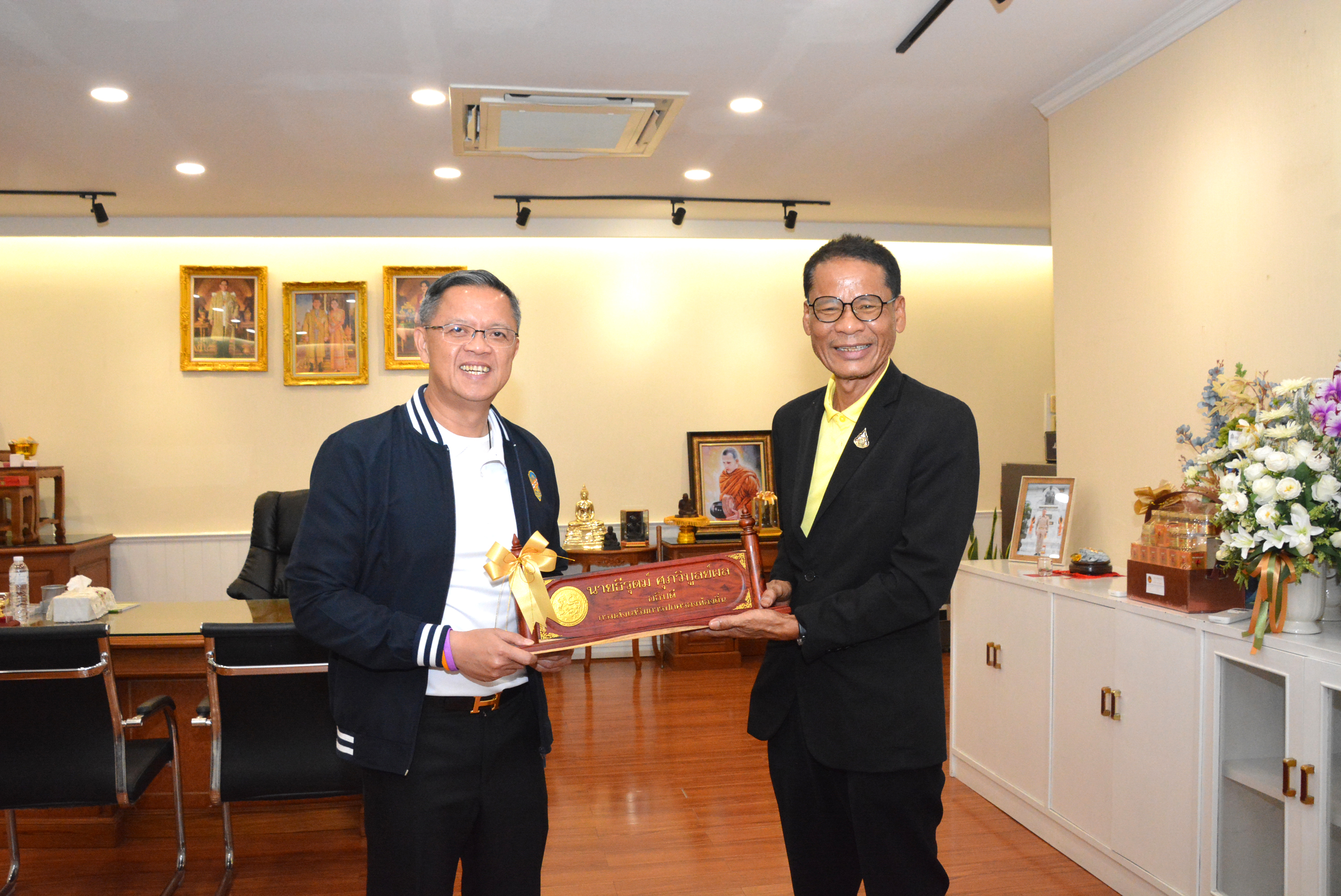 วันที่ 16 ธันวาคม 2568 องค์การอุตสาหกรรมป่าไม้ (อ.อ.ป.) มอบหมายให้ นายชนุดม เพชรสังข์ รองผู้อำนวยการองค์การอุตสาหกรรมป่าไม้ สายบริหาร เป็นผู้แทนหน่วยงาน เข้าร่วมแสดงความยินดีกับ นายธีรุตม์ ศุภวิบูลย์ผล ในการเข้าดำรงตำแหน่งอธิบดีกรมส่งเสริมการปกครองท้องถิ่น คนใหม่ พร้อมมอบป้ายชื่อ (ไม้พะยูง) เพื่อเป็นของที่ระลึก ซึ่งเป็นหนึ่งในตัวอย่างของการสร้างมูลค่าเพิ่มให้กับไม้จากสวนป่าเศรษฐกิจของ อ.อ.ป. ณ กรมส่งเสริมการปกครองท้องถิ่น เขตดุสิต กรุงเทพฯ