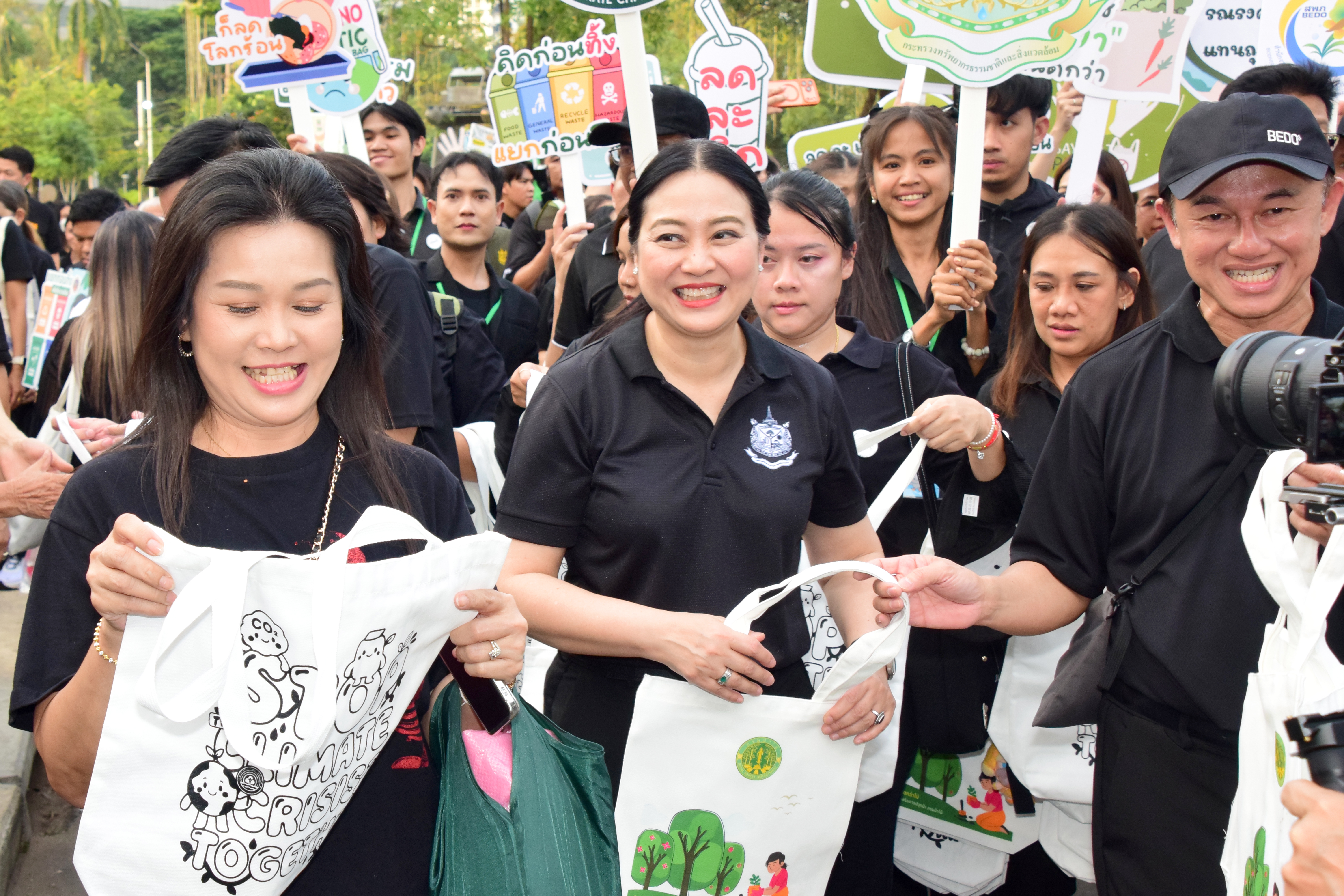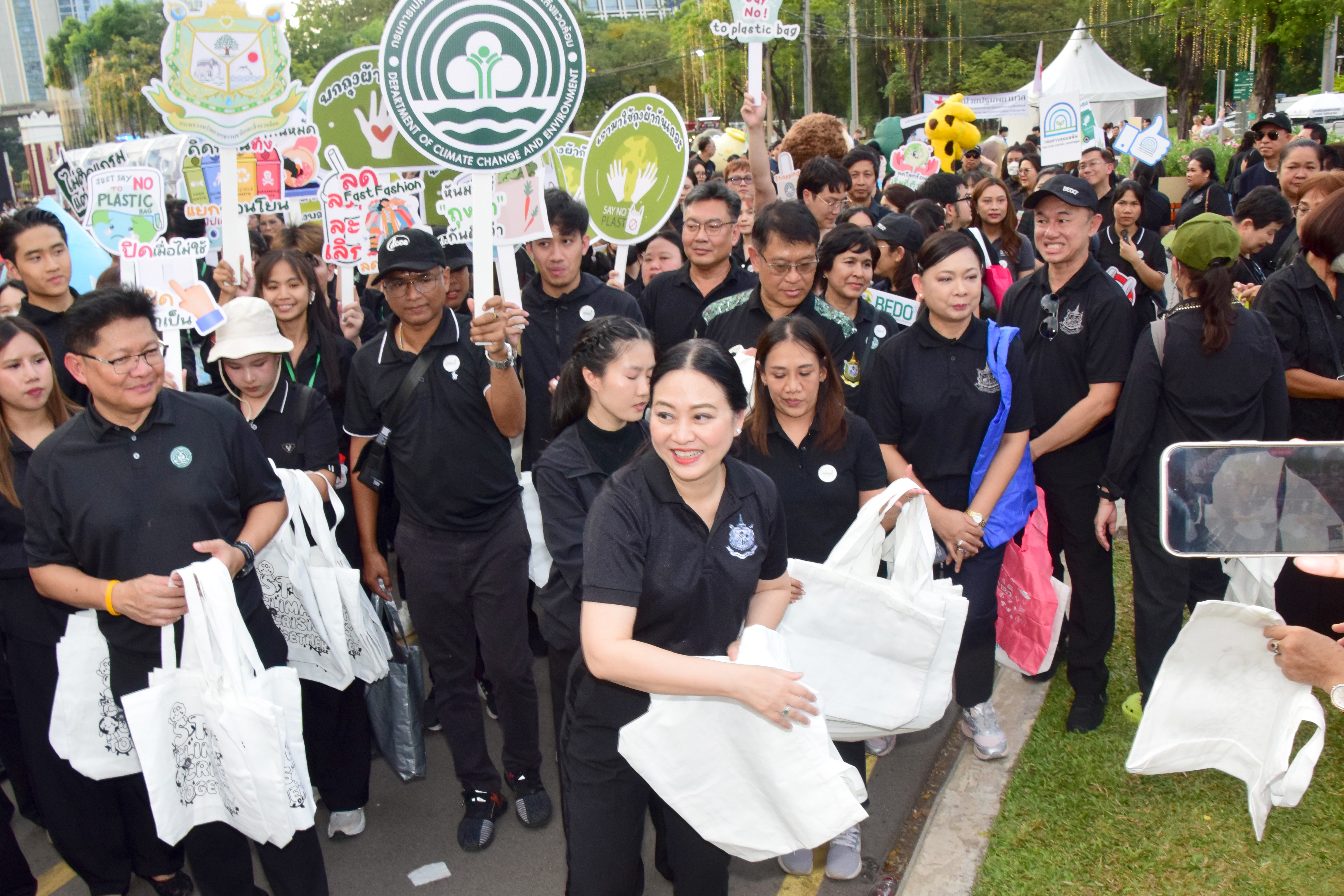 เมื่อวันที่ 19 ธันวาคม 2568 ดร.วีวรรณ ภูริเดช ปลัดกระทรวงทรัพยากรธรรมชาติและสิ่งแวดล้อม (ปกท.ทส.) พร้อมด้วย นางสาวภัทรานันท์ ทองประพาฬ รองเลขาธิการนายกรัฐมนตรีฝ่ายการเมือง นำทีมผู้บริหาร ข้าราชการ และเจ้าหน้าที่ ในสังกัดกระทรวงทรัพยากรธรรมชาติและสิ่งแวดล้อม (ทส.) รวมถึงผู้แทนจากองค์การอุตสาหกรรมป่าไม้ (อ.อ.ป) เข้าร่วมกิจกรรมเดินรณรงค์ลดการใช้ถุงพลาสติกและการคัดแยกขยะ รวมถึงการตรวจวัดคุณภาพเสียง ในงานกาชาด ประจำปี 2568 ณ สวนลุมพินี กรุงเทพฯ
