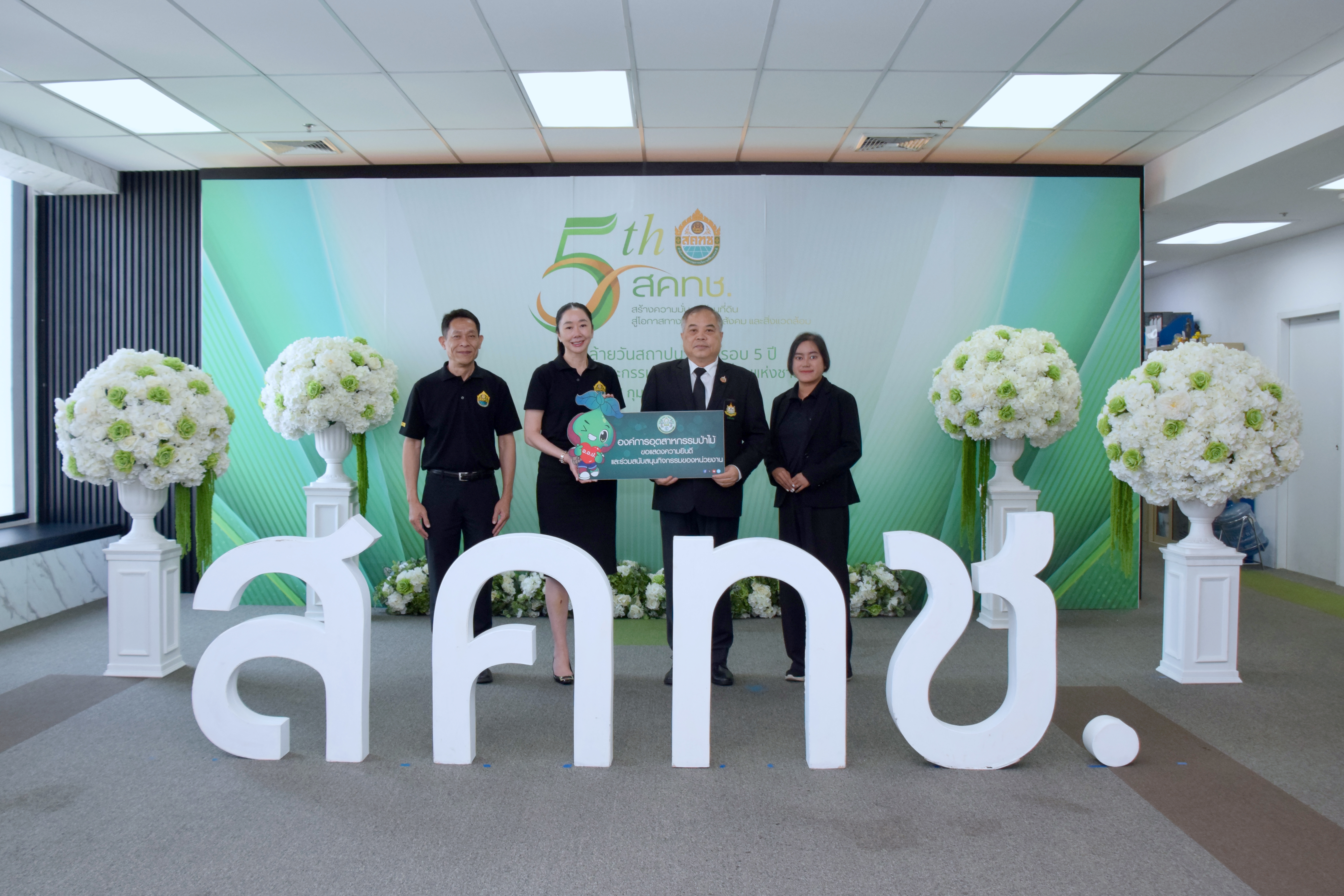 วันที่ 11 กุมภาพันธ์ 2569 นายชาญณรงค์ อินทนนท์ รองผู้อำนวยการองค์การอุตสาหกรรมป่าไม้ สายธุรกิจ 2 พร้อมด้วยนางสาวเบญจมกร มาน้อย หัวหน้างาน (ระดับ 6) งานสื่อมวลชนสัมพันธ์ ส่วนประชาสัมพันธ์ ฝ่ายสื่อสารองค์กร สำนักบริหารกลาง เข้าร่วมแสดงความยินดีเนื่องในโอกาสวันคล้ายวันสถาปนา ครบรอบ 5 ปี สำนักงานคณะกรรมการนโยบายที่ดินแห่งชาติ (สคทช.) พร้อมร่วมบริจาคเงินเข้ากองทุนสวัสดิการ สคทช. โดยมี ดร.ชญานันท์ ภักดีจิตต์ ผู้อำนวยการสำนักงานคณะกรรมการนโยบายที่ดินแห่งชาติ และนายสกุลยุช ศรุตานนท์ ผู้ช่วยผู้อำนวยการ สคทช. ให้การต้อนรับและรับมอบ ณ บริเวณโถง ชั้น 20 สคทช. อาคารอารีย์ ฮิล ถนนพหลโยธิน กรุงเทพฯ