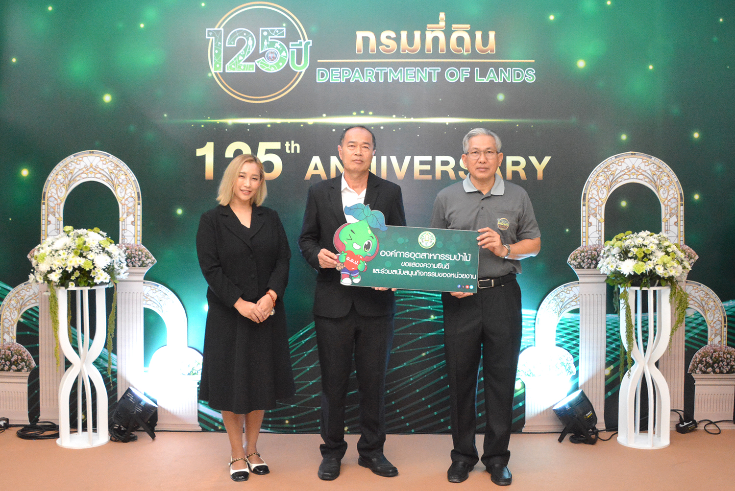วันที่ 17 กุมภาพันธ์ 2569 นายสุรัตน์ชัย อินทร์วิเศษ ผู้อำนวยการสำนักธุรกิจการตลาด เป็นผู้แทนองค์การอุตสาหกรรมป่าไม้ (อ.อ.ป.) เข้าร่วมแสดงความยินดีกับกรมที่ดิน เนื่องในโอกาสวันคล้ายวันสถาปนากรมที่ดิน ครบรอบ 125 ปี พร้อมบริจาคเงินเพื่อสมทบทุนแก่องค์กรสาธารณกุศล มูลนิธิต่าง ๆ และกิจกรรมเพื่อสังคม โดยมี ว่าที่ร้อยตรี สมศักดิ์ สันประเสริฐ หัวหน้าผู้ตรวจราชการกรมที่ดิน พร้อมคณะผู้บริหาร ร่วมให้การต้อนรับ ณ กรมที่ดิน ศูนย์ราชการเฉลิมพระเกียรติ 80 พรรษาฯ อาคารรัฐประศาสนภักดี เขตหลักสี่ กรุงเทพฯ