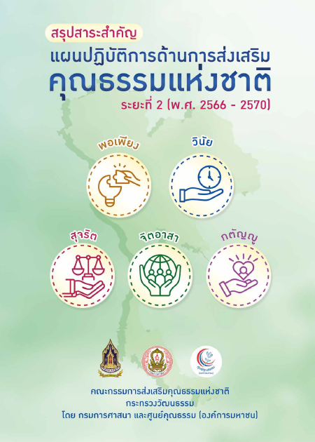 เอกสารดาวน์โหลด สรุปสาระสำคัญ แผนปฏิบัติการด้านการส่งเสริมคุณธรรมแห่งชาติ ระยะที่ 2 (พ.ศ. 2566 - 2570) ประเภทไฟล์ .pdf ขนาดไฟล์ 28.34 Mb เอกสารดาวน์โหลด 5 ครั้ง