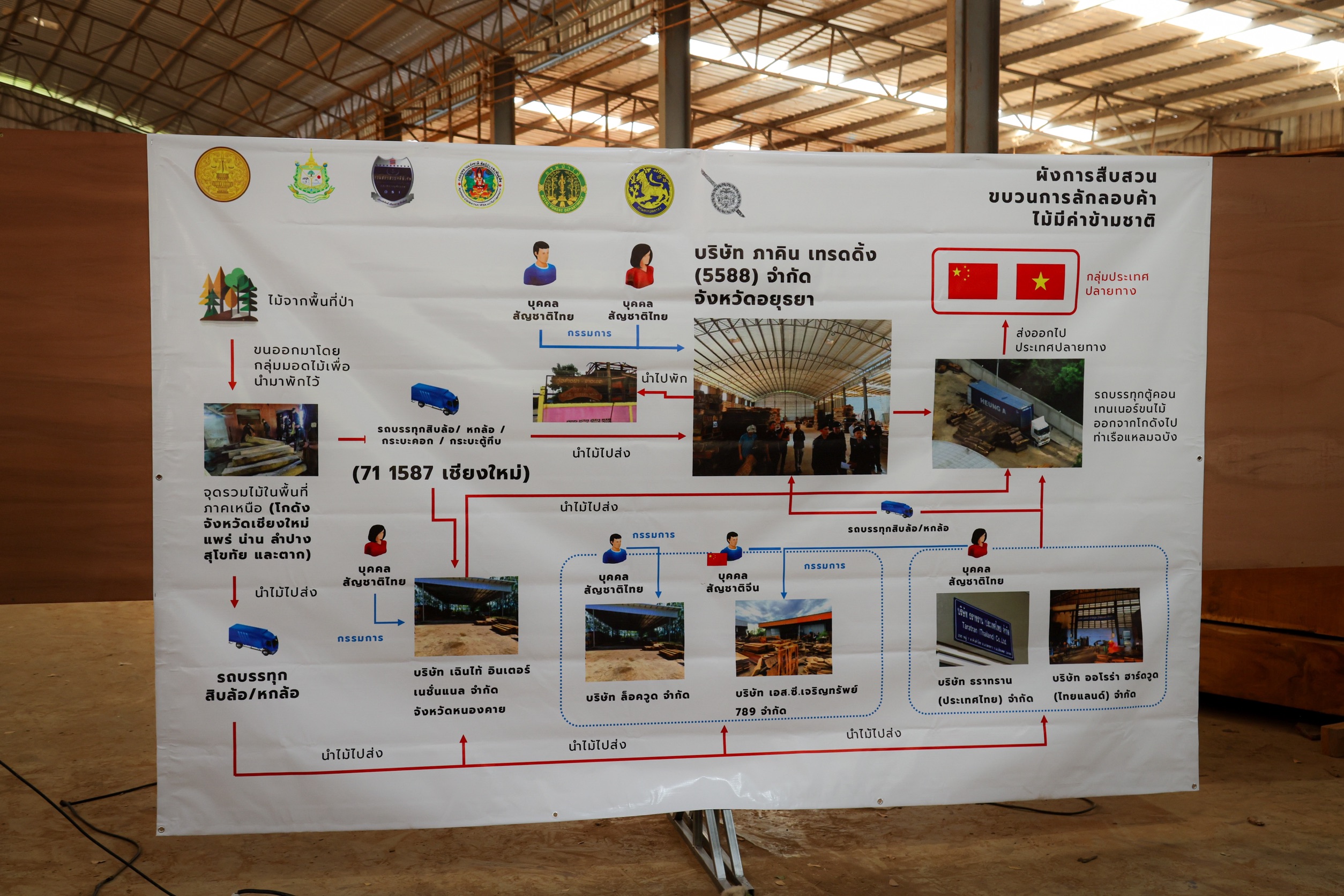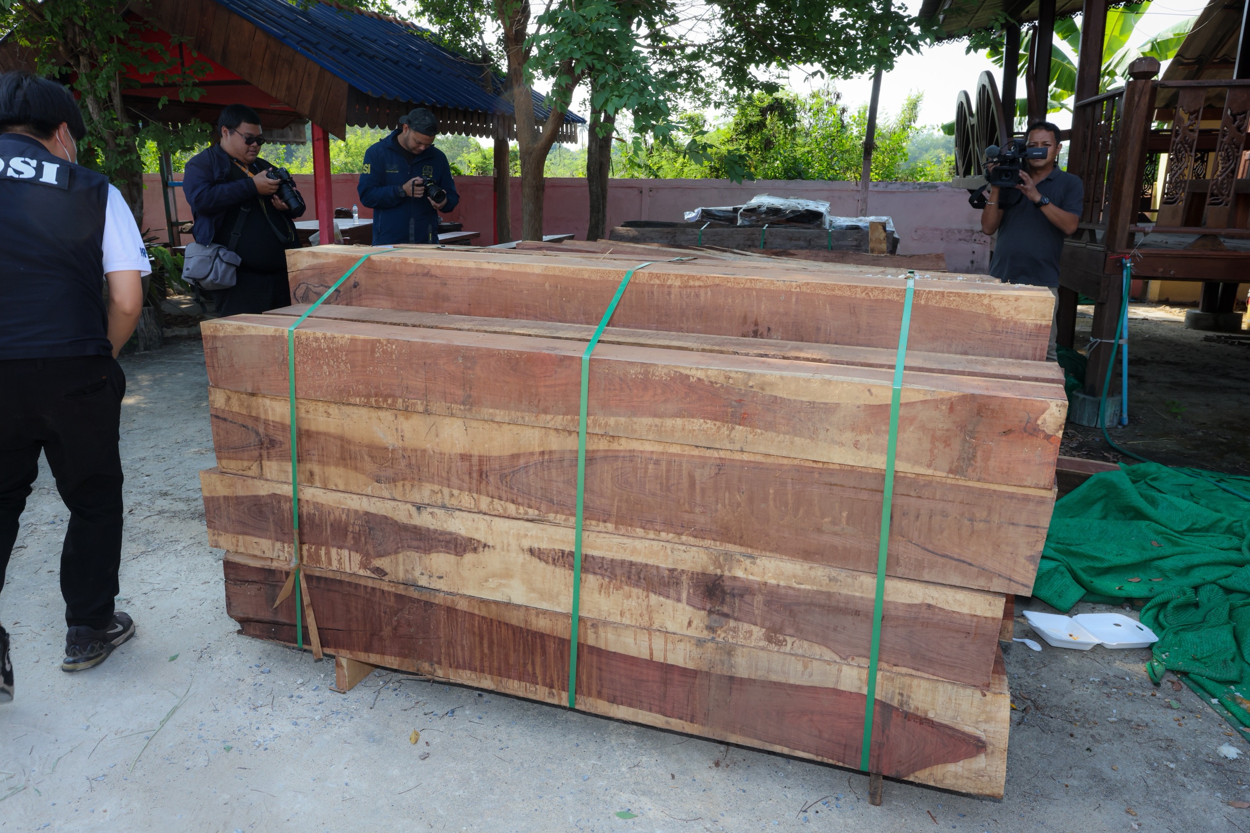 จากการตรวจสอบเบื้องต้น พบว่า ไม้ภายในโกดังส่วนใหญ่มีลักษณะต้องสงสัยว่าอาจไม่ถูกต้องตามกฎหมาย กรมป่าไม้จึงได้ดำเนินการอายัดไม้ของกลาง พร้อมอุปกรณ์ที่เกี่ยวข้อง เพื่อตรวจสอบและตรวจนับอย่างละเอียด เนื่องจากมีปริมาณจำนวนมาก ขณะที่กรมสอบสวนคดีพิเศษ (DSI) ได้ดำเนินการอายัดเอกสารและรวบรวมพยานหลักฐาน เพื่อนำไปตรวจพิสูจน์และขยายผลการสืบสวน โดยพบว่าเอกสารที่เกี่ยวข้องกับไม้ภายในโกดังมีข้อพิรุธหลายประการและอาจไม่สอดคล้องกับไม้ที่ตรวจพบ จึงได้ดำเนินการอายัดไม้แปรรูป ไม้ท่อน ปีกไม้ และปลายไม้ รวมไม่น้อยกว่า 3,350 ท่อน/แผ่น/เหลี่ยม ปริมาตรรวมประมาณ 1,100 ลูกบาศก์เมตร มูลค่าความเสียหายไม่ต่ำกว่า 50 ล้านบาท และอาจมีมูลค่าทางการค้าสูงถึงประมาณ 3,000 ล้านบาท โดยเจ้าหน้าที่กรมสอบสวนคดีพิเศษ ได้ติดตามขยายผลพบความเคลื่อนไหว เมื่อวันที่ 11 มีนาคม 2569 เวลา 01.30 น. มีการนำเข้า - ส่งออกไม้จากโกดังแห่งนี้ โดยใช้รถยนต์บรรทุกเทรลเลอร์มุ่งหน้าสู่จังหวัดชลบุรี พบไม้ประดู่จำนวน 34 ท่อน ปริมาตรและความยาวไม่ตรงกับเอกสารที่นำมาแสดงให้กับทางเจ้าหน้าที่ จึงได้อายัดรถยนต์บรรทุกเทรลเลอร์ พร้อมไม้ประดู่ 34 ท่อน ซึ่งอยู่ภายในตู้คอนเทนเนอร์ และได้นำไปเก็บรักษาไว้ที่หน่วยป้องกันรักษาป่าที่ ชบ.1 (บางละมุง) จ.ชลบุรี