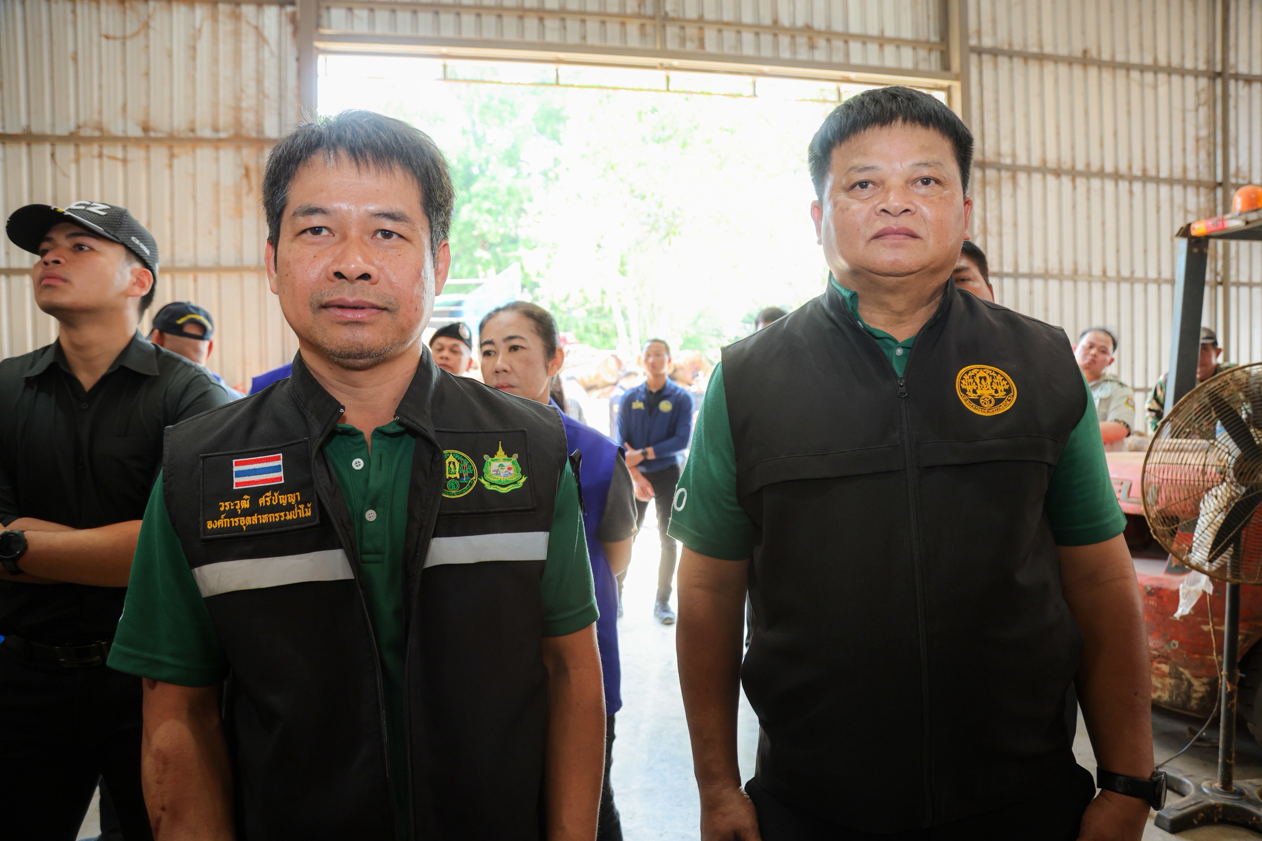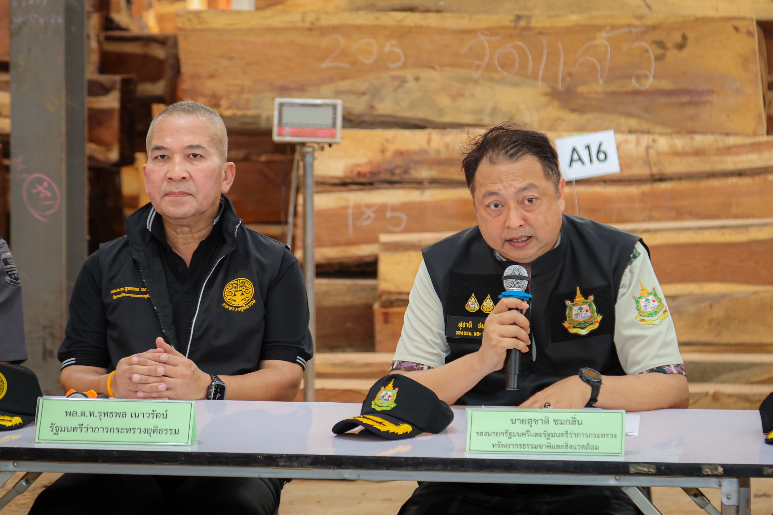 วันที่ 12 มีนาคม 2569 เวลา 09.30 น. นายสุชาติ ชมกลิ่น รองนายกรัฐมนตรีและรัฐมนตรีว่าการกระทรวงทรัพยากรธรรมชาติและสิ่งแวดล้อม พร้อมด้วย พล.ต.ท.รุทธพล เนาวรัตน์ รัฐมนตรีว่าการกระทรวงยุติธรรม ได้รับมอบหมายจากนายกรัฐมนตรี ลงพื้นที่ติดตามการตรวจสอบโกดังของบริษัท ภาคินเทรดดิ้ง (5588) จำกัด เลขที่ 43/1 หมู่ 5 ตำบลหันสัง อำเภอบางปะหัน จังหวัดพระนครศรีอยุธยา พร้อมร่วมแถลงข่าวความคืบหน้าการดำเนินการตรวจสอบไม้ต้องสงสัยในพื้นที่ โดยมี พล.ต.ต.นันทชาติ ศุภมงคล ที่ปรึกษารัฐมนตรีว่าการกระทรวงทรัพยากรธรรมชาติและสิ่งแวดล้อม นายชวนินทร์ วงศ์สถิตจิรกาล ผู้ว่าราชการจังหวัดพระนครศรีอยุธยา รวมทั้งหน่วยงานที่เกี่ยวข้อง อาทิ กรมป่าไม้ กรมอุทยานแห่งชาติ สัตว์ป่า และพันธุ์พืช องค์การอุตสาหกรรมป่าไม้ กองบังคับการปราบปรามการกระทำความผิดเกี่ยวกับทรัพยากรธรรมชาติและสิ่งแวดล้อม และกรมสอบสวนคดีพิเศษ เข้าร่วมปฏิบัติการ