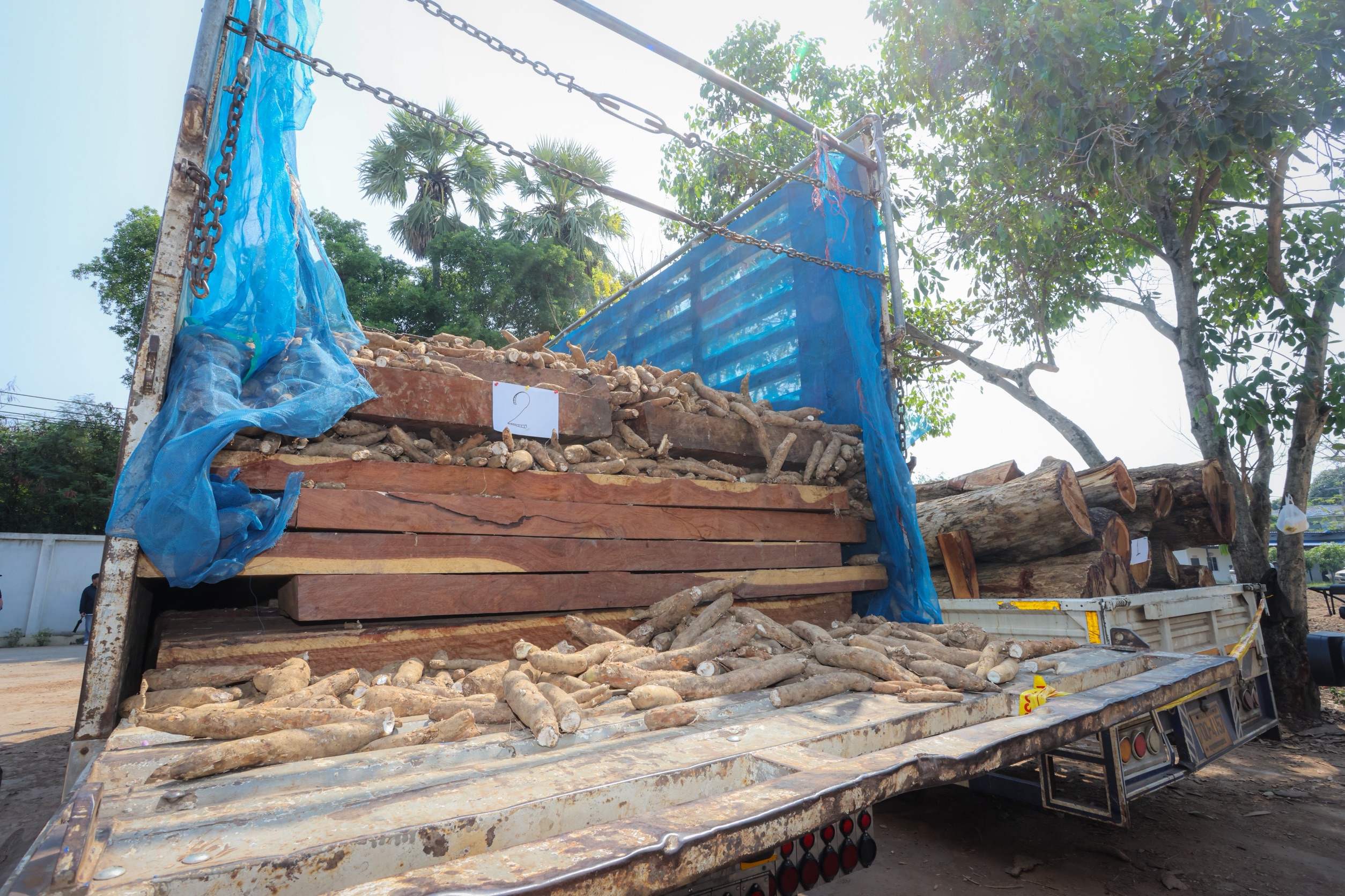 และเมื่อเวลา 10.00 น. ได้ตรวจยึดและอายัดรถบรรทุกจำนวน 2 คัน โดยได้มีการดำเนินคดี จำนวน 1 คัน ซึ่ง บรรทุกไม้มาจากอำเภอแม่สอด จังหวัดตาก มีลักษณะการลักลอบซุกซ่อนไม้ประดู่โดยสำแดงสินค้าเป็นมันสำปะหลังเพื่ออำพราง การตรวจสอบ ส่วนรถบรรทุกอีก 1 คัน ที่บรรทุกไม้มาจากจังหวัดบุรีรัมย์ ได้มีการอายัดเพื่อรอการตรวจสอบต่อไป นอกจากนี้เจ้าหน้าที่ยังตรวจพบซากสัตว์ป่าคุ้มครอง ระบุชนิดเป็นจำพวกนกได้จำนวน 10 ชนิด 28 ซาก จำพวกสัตว์เลี้ยงลูกด้วยนมไม่ทราบชนิดจำนวน 4 ชิ้นเนื้อ เกล็ดลิ่นน้ำหนัก 900 กรัม และระบุเป็นกลุ่มได้อีกจำนวน 21 กลุ่ม จำนวน 68 ซาก รวมซากสัตว์ป่าของกลางทั้งสิ้น 96 ซาก และ 4 ชิ้นเนื้อ โดยกรมอุทยานแห่งชาติ สัตว์ป่า และพันธุ์พืชจะนำไปตรวจสอบพิสูจน์ชนิดซากสัตว์ป่าของกลาง และเก็บรักษาตามระเบียบหรือจนกว่าคดีจะถึงที่สุด